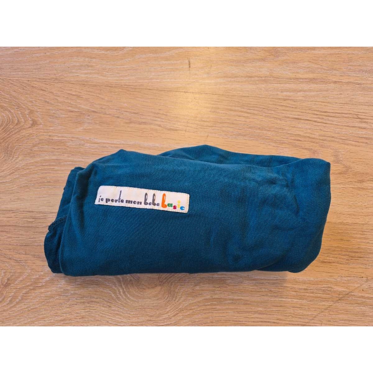 Petrol blue 2 way stretchy wrap from French brand Love Radius, previously Je Porte Mon Bebe. This wrap is beautifully stretchy and supportive, made from knitted cotton jersey and elastane. Suitable from newborn with a weight limit of 3.5kg- 9kg.